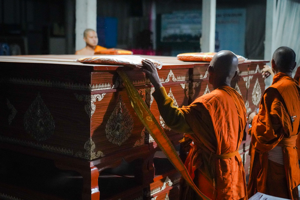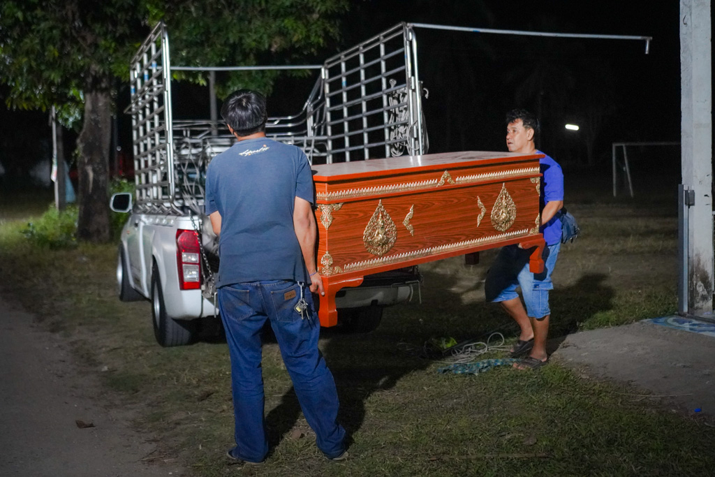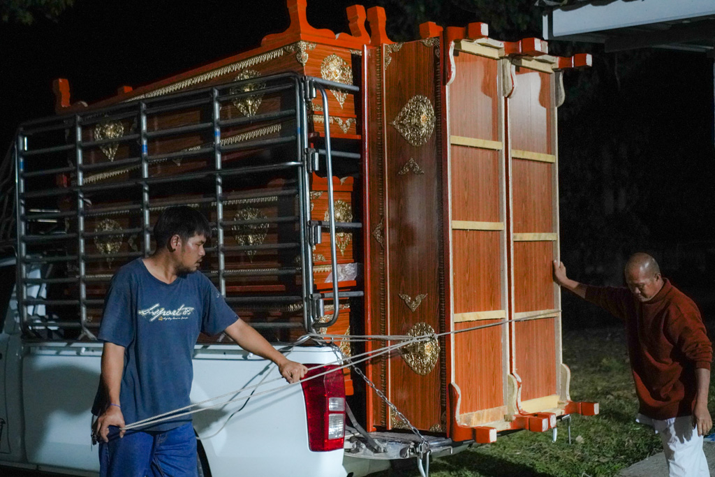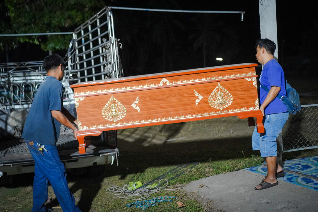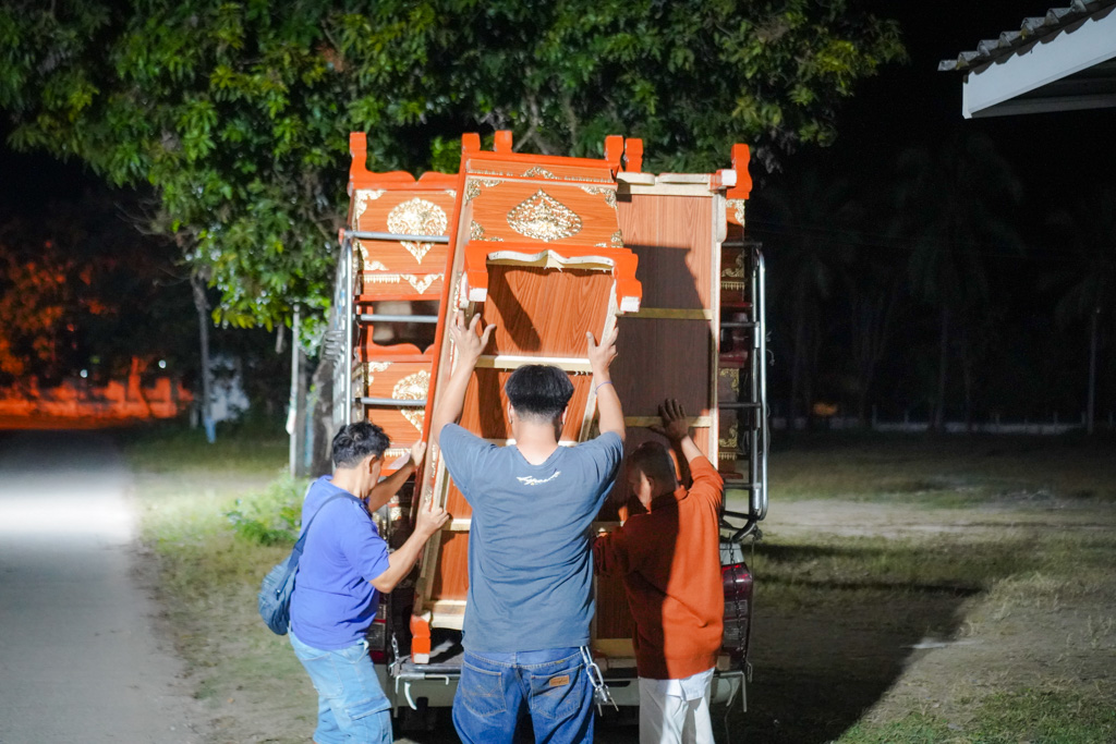 วัดหนองก๋ายเตรียมส่งมอบ โลงศพจำนวน 10 โลง พร้อมผ้าดิบห่อศพ 10 ผืน
