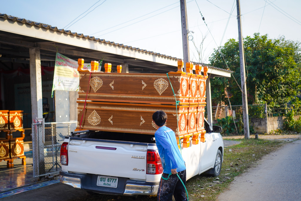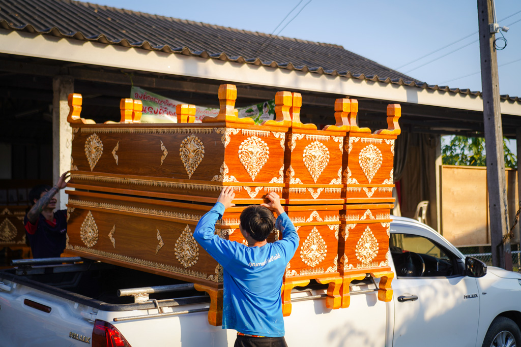 ครั้งนี้พิเศษและเห็นถึงความตั้งใจจริง… ทาง อบต.กองแขก อ.แม่แจ่ม จะนำรถเดินทางฝ่าเส้นทางคดเคี้ยว “มารับโลงศพด้วยตนเอง” ถึงที่วัด เพื่อนำกลับไปช่วยเหลือพี่น้องบนดอยที่ยากไร้และขาดแคลน