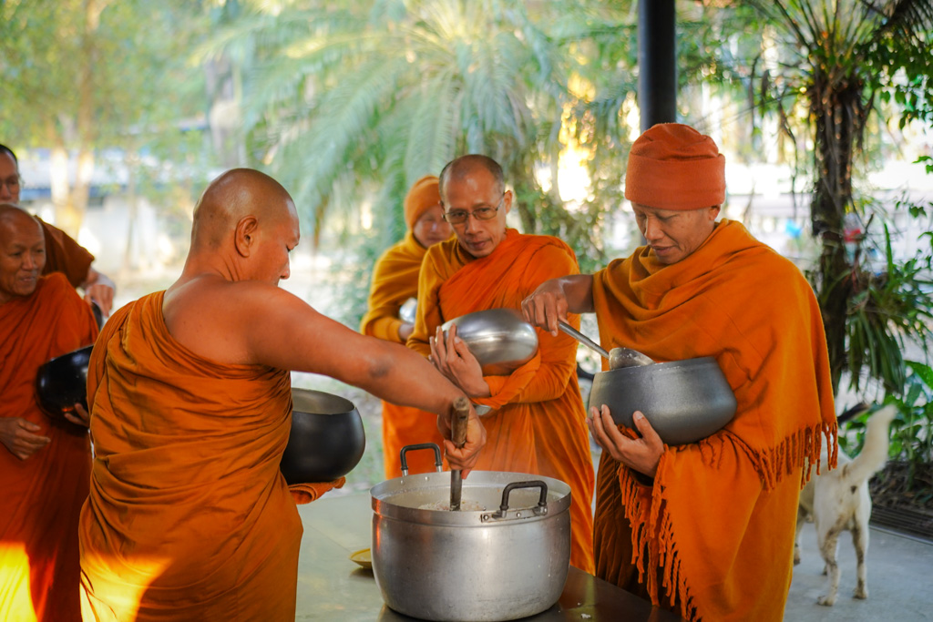 เช้านี้ที่ศูนย์ปฏิบัติธรรมวัดหนองก๋าย อากาศกำลังเย็นสบาย… ทางวัดและคณะเจ้าภาพได้น้อมถวาย ข้าวต้มร้อนๆ ปรุงสุกใหม่ พร้อมด้วยภัตตาหารหลากหลายเมนู แด่พระภิกษุสงฆ์ 11 รูป เพื่อช่วยคลายหนาวและบำรุงธาตุขันธ์