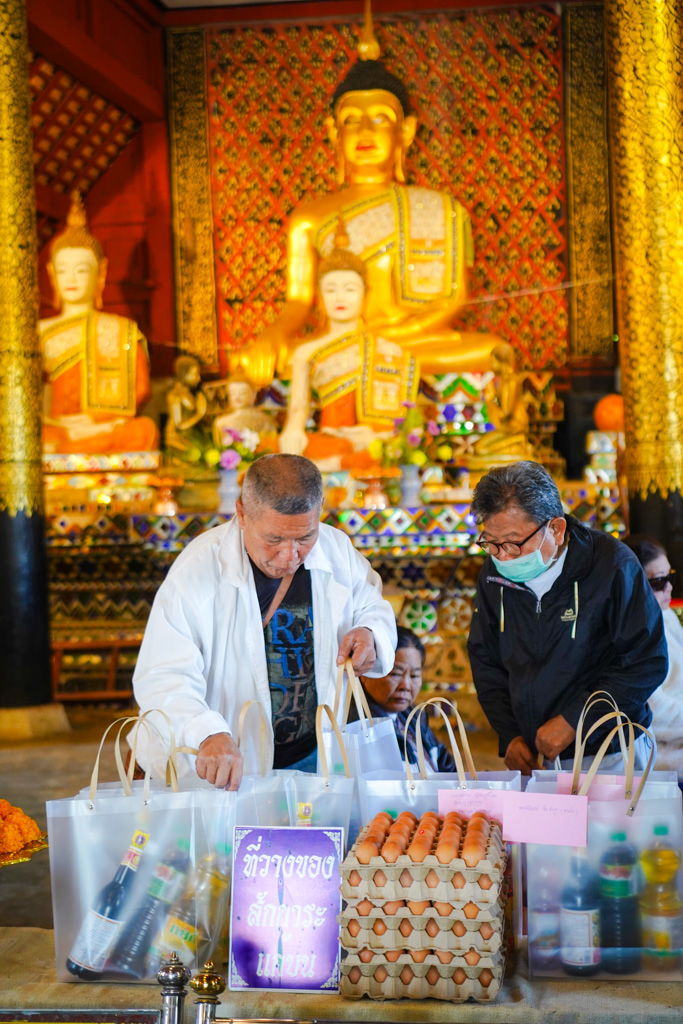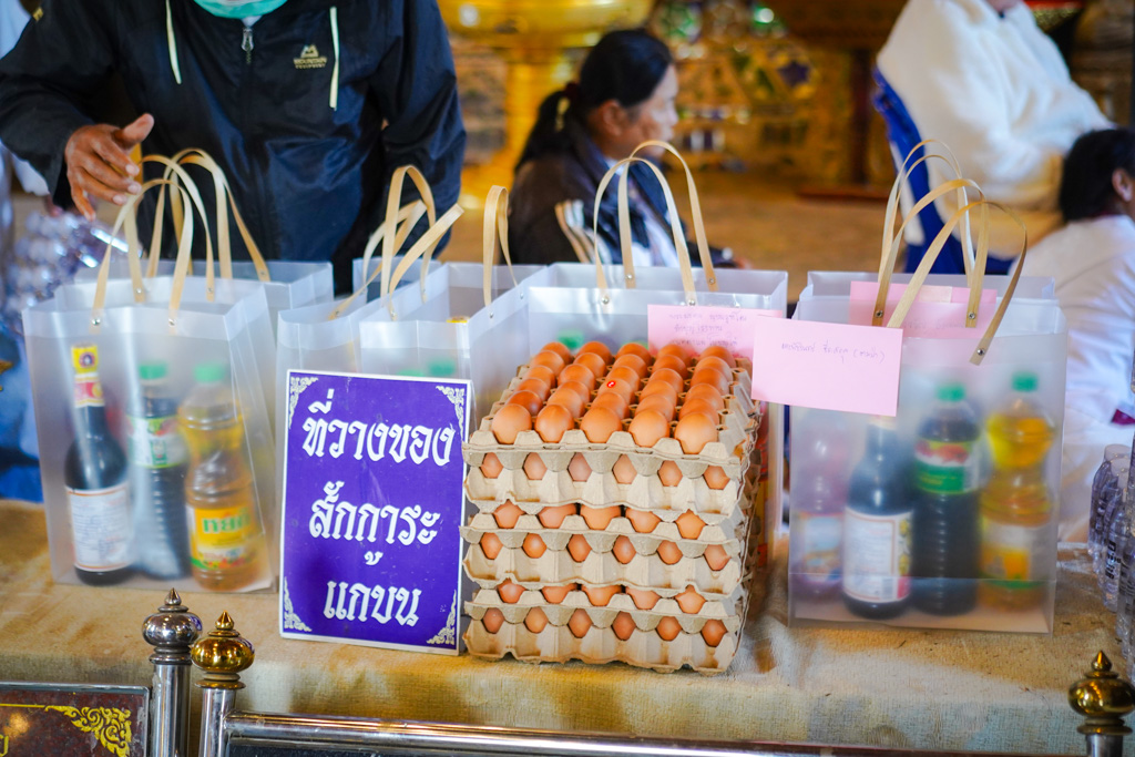 ซึ่งในขณะนี้วัดหนองก๋ายได้เปิดรับ ของสด ผัก ผลไม้ เนื้อหมู เนื้อไก่ ไข่ เครื่องปรุง รวมไปถึงของอุปโภคต่างๆ น้ำยาล้างจาน น้ำยาล้างห้องน้ำ รับมหาอานิสงส์แห่งทานกันอย่างครบถ้วน ซึ่งของที่ได้รับการบริจาคทำบุญมาจากทุกท่านนั้น จะนำไปถวายพระภิกษุสงฆ์ ปรุงเป็นอาหาร ถวายภัตตาหารเช้า ภัตตาหารเพล น้ำปานะ ในทุกๆ วัน