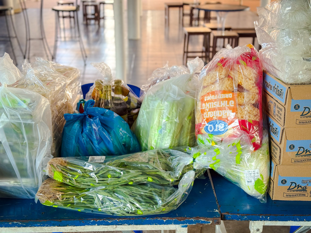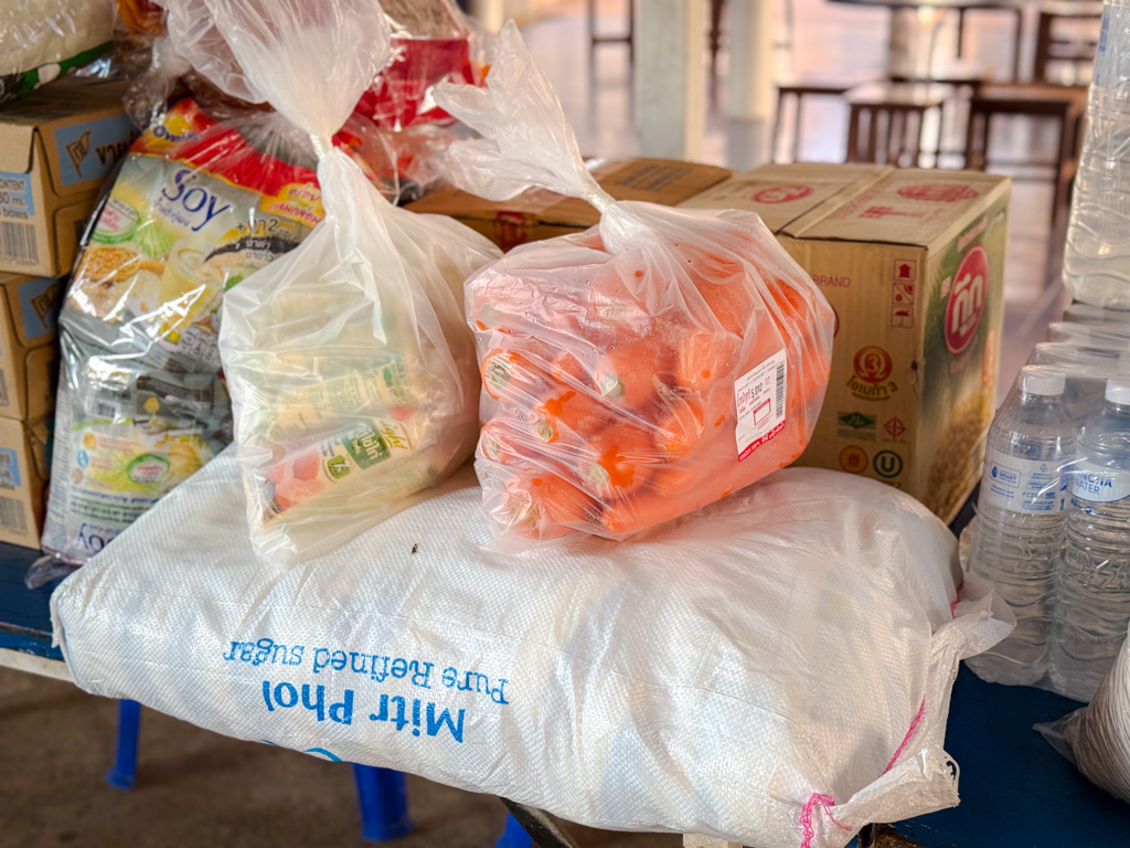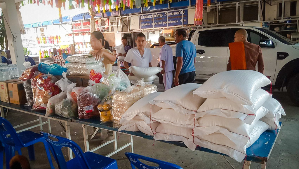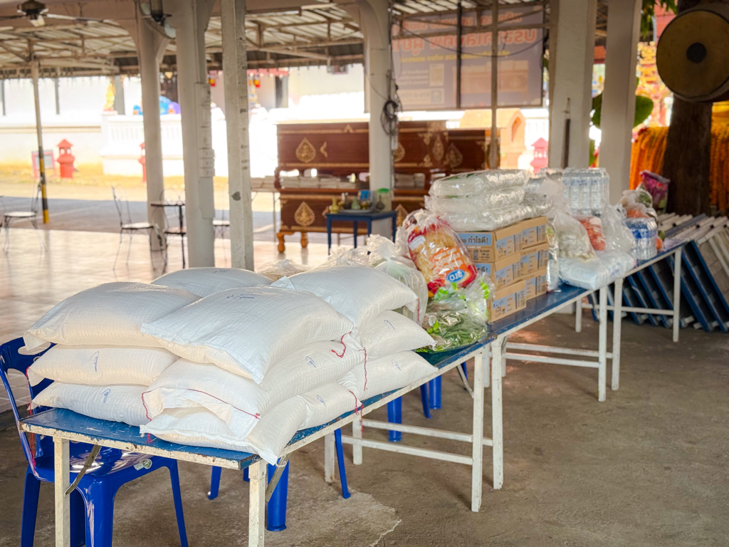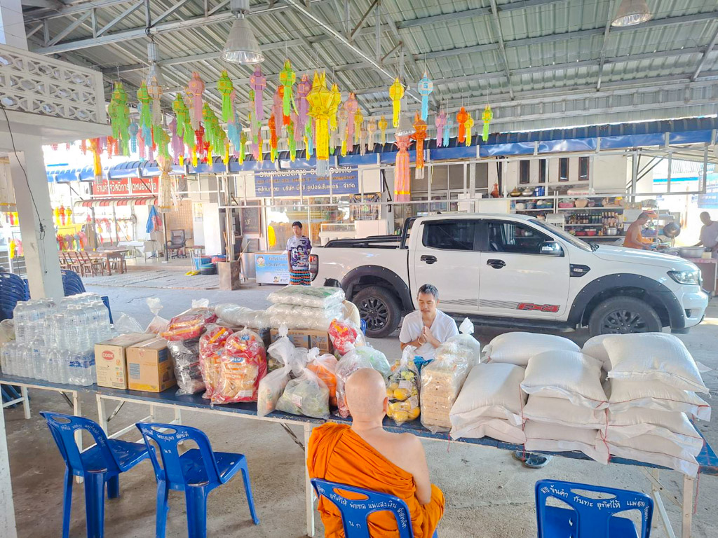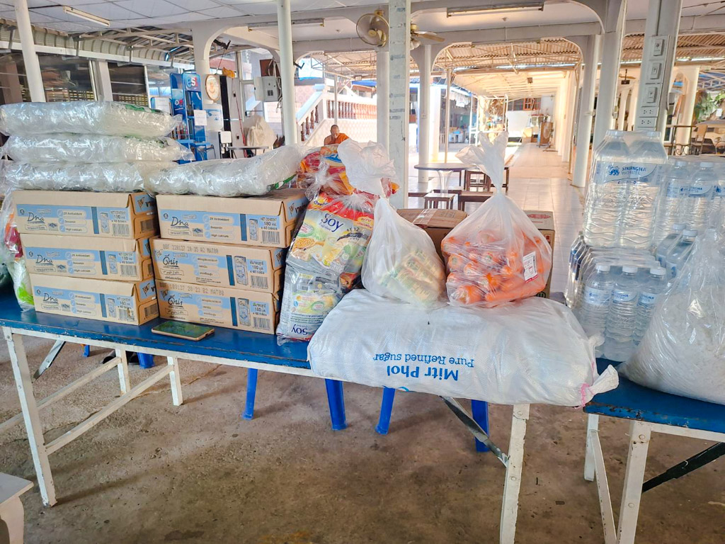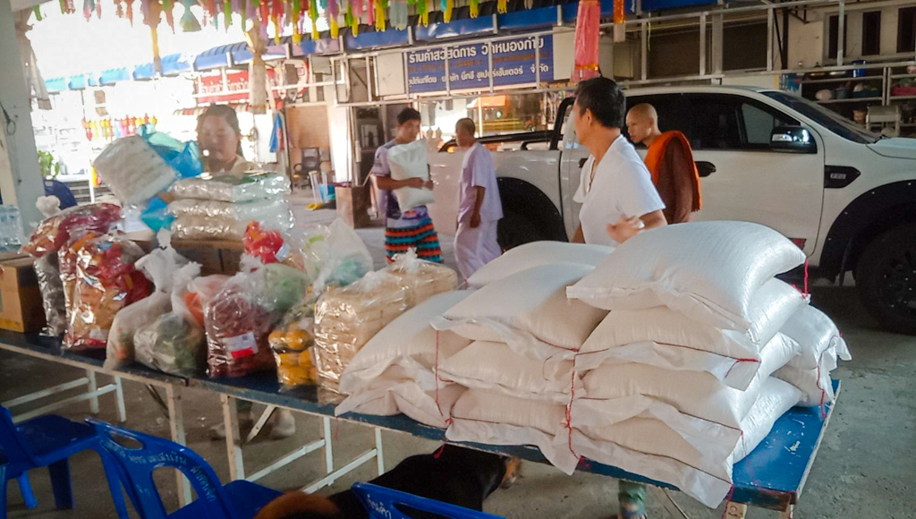 ซึ่งในขณะนี้วัดหนองก๋ายได้เปิดรับ ของสด ผัก ผลไม้ เนื้อหมู เนื้อไก่ ไข่ เครื่องปรุง รวมไปถึงของอุปโภคต่างๆ น้ำยาล้างจาน น้ำยาล้างห้องน้ำ รับมหาอานิสงส์แห่งทานกันอย่างครบถ้วน ซึ่งของที่ได้รับการบริจาคทำบุญมาจากทุกท่านนั้น จะนำไปถวายพระภิกษุสงฆ์ ปรุงเป็นอาหาร ถวายภัตตาหารเช้า ภัตตาหารเพล น้ำปานะ ในทุกๆ วัน