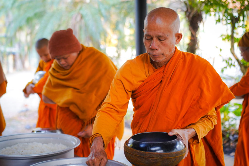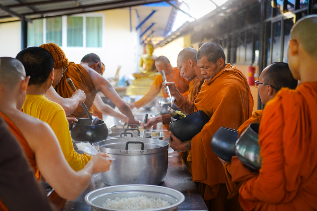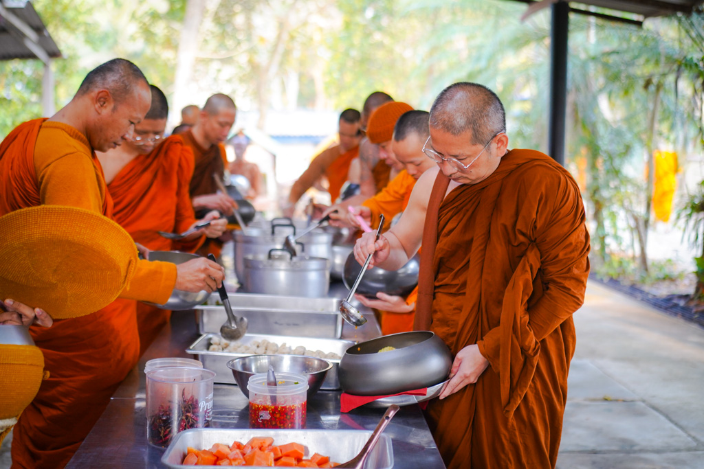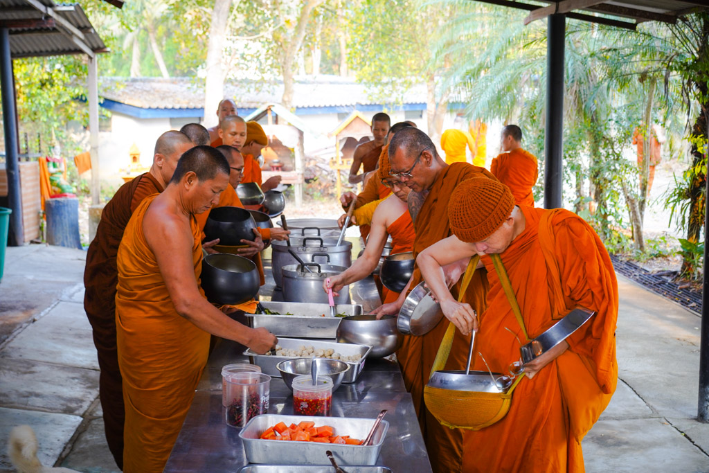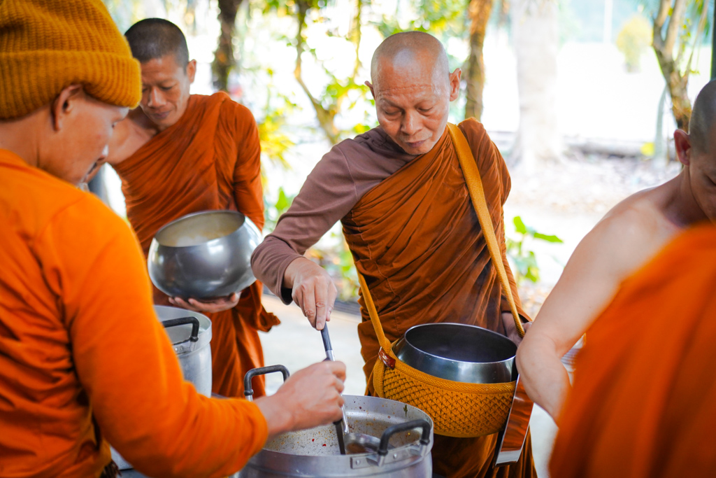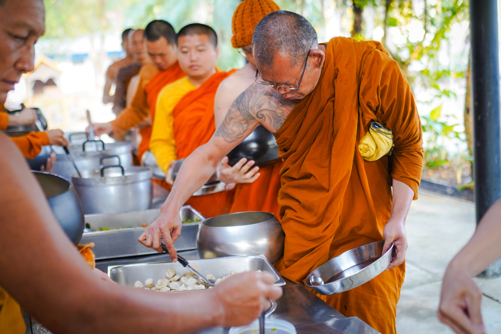 🙏✨ ศรัทธาเรียงราย… พระสงฆ์ 38 รูป รับบิณฑบาตภัตตาหารเช้า เมนูเด็ด “แกงอ่อม – ต้มมะระ” ✨🙏