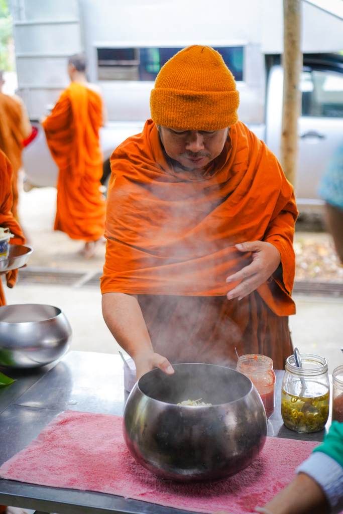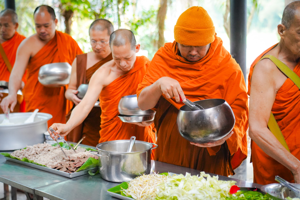 เช้านี้ที่ศูนย์ปฏิบัติธรรมวัดหนองก๋าย จ.เชียงใหม่ แม้บรรยากาศจะดูครึ้มๆ แต่กลับสว่างไสวไปด้วยพลังแห่งความศรัทธา… ทีม “แม่ครัวอิ่มบุญ” ของเราตื่นกันตั้งแต่เช้าตรู่ เพื่อเตรียมน้ำซุปกระดูกหมูหอมๆ และลวกเส้นปรุงสดใหม่ชามต่อชาม ถวายแด่พระภิกษุสงฆ์หมู่ใหญ่ถึง 51 รูป