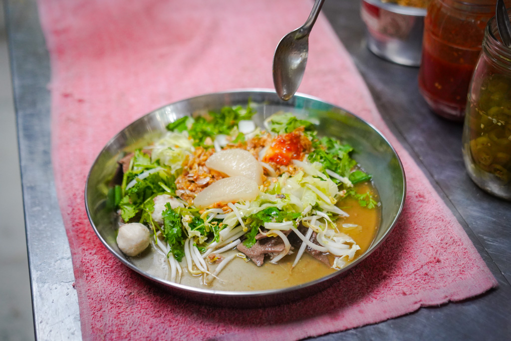 จัดเต็มเครื่องเน้นๆ ให้พระคุณเจ้าได้ฉันอย่างเต็มอิ่ม: 🍲 เครื่องก๋วยเตี๋ยวพรีเมียม: หมูนุ่มละมุนลิ้น, หมูสับ, ตับลวกสุกกำลังดี, และลูกชิ้นหมูอย่างดี 🍜 เส้นเหนียวนุ่ม: มีให้เลือกทั้งเส้นเล็ก และ หมี่เหลือง