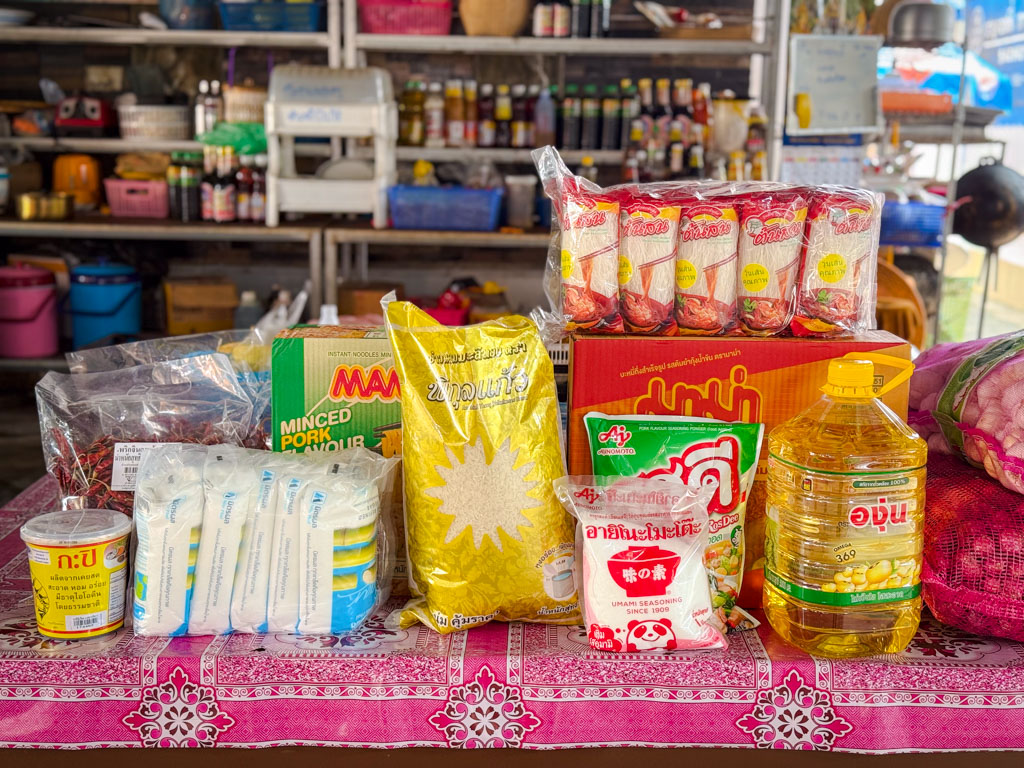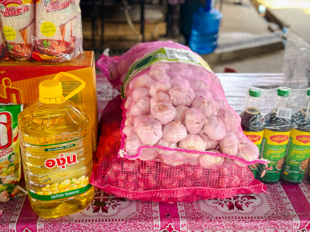 จัดเต็มเสบียงบุญเพื่อพระภิกษุสงฆ์ ทั้ง บะหมี่กึ่งสำเร็จรูป, น้ำตาล, น้ำมัน, ซอสเครื่องปรุงรสต่างๆ, น้ำปานะ (น้ำหวาน/เครื่องดื่มชงสำเร็จรูป) และน้ำยาทำความสะอาด อนุโมทนาบุญ และขออาราธนาคุณพระศรีรัตนตรัย ดลบันดาลพรประเสริฐให้คณะเจ้าภาพและครอบครัว: ✨ ถวายบะหมี่ฯ และเครื่องปรุง: ขอให้ชีวิตมีแต่อายุยืนยาว มีรสชาติแห่งความสุขที่กลมกล่อม อุดมสมบูรณ์ไม่ขาดแคลน ✨ ถวายน้ำตาล และน้ำปานะ: ขอให้ชีวิตมีความหวานชื่น ราบรื่น สดใส ชุ่มฉ่ำใจในทุกๆ วัน ✨ ถวายน้ำยาทำความสะอาด: ขอให้สรรพเคราะห์ สรรพโศก โรคภัย อุปสรรคต่างๆ จงถูกชำระล้างให้มลายหายไป มีแต่ความบริสุทธิ์และเจริญรุ่งเรืองตลอดไป