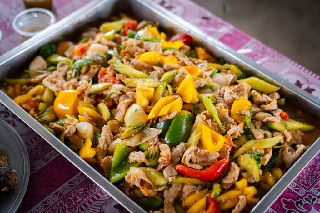 มื้อนี้เจ้าภาพตั้งใจจัดเตรียมเมนูมาอย่างประณีตและอุดมสมบูรณ์: 🐟 ปลาทอดสมุนไพร หอมกลิ่นสมุนไพร กรอบอร่อย 🍲 ต้มแซ่บซี่โครงอ่อน รสจัดจ้าน ซดคล่องคอ 🍅 ผัดเปรี้ยวหวาน ครบรส กลมกล่อม 🥬 คะน้าหมูกรอบ เมนูยอดฮิตตลอดกาล 🍮 ปิดท้ายด้วย ขนมหวานหลากหลายชนิด เติมเต็มความสมบูรณ์ให้มื้อนี้