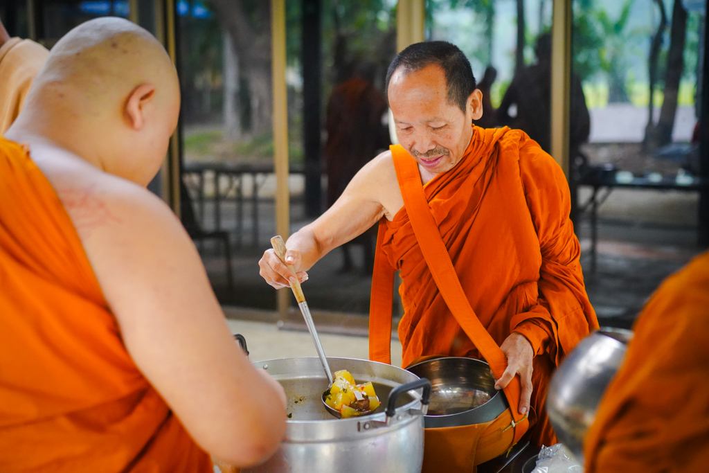เพราะการศึกษาและปฏิบัติธรรมของพระคุณเจ้าดำเนินไปในทุกๆ วัน… ปากท้องและพละกำลังจึงเป็นสิ่งสำคัญ “ที่นี่พระสงฆ์ท่านฉันทุกวัน ญาติโยมจึงสามารถมาร่วมบุญได้ทุกวันครับ”