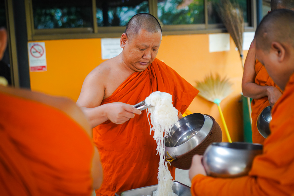 เช้านี้ที่ศูนย์ปฏิบัติธรรมวัดหนองก๋าย ขออนุโมทนาบุญกับคณะเจ้าภาพผู้ใจบุญ ที่ร่วมกันน้อมถวายภัตตาหารเช้าเป็นสังฆทาน แด่พระภิกษุสงฆ์จำนวน 25 รูป มื้อนี้ครัวอิ่มบุญจัดเตรียมเมนูสุดพิเศษที่ครบรสและลงตัวสุดๆ ครับ: 🍲 ขนมจีน & ข้าวสวย คู่กับ แกงเขียวหวานไก่: เมนูยอดฮิต หอมกลิ่นเครื่องแกงและกะทิ รสชาติเข้มข้น เลือกทานคู่กับข้าวหรือเส้นขนมจีนก็อร่อยเข้ากัน 🥬 คั่วกะหล่ำ: ผัดร้อนๆ หวานกรอบ ช่วยตัดรสชาติมื้ออาหารให้กลมกล่อมยิ่งขึ้น 🥥 มะพร้าวเผา: ปิดท้ายมื้อด้วยความหอมหวานและน้ำมะพร้าวเย็นชื่นใจ ช่วยดับกระหายคลายร้อน