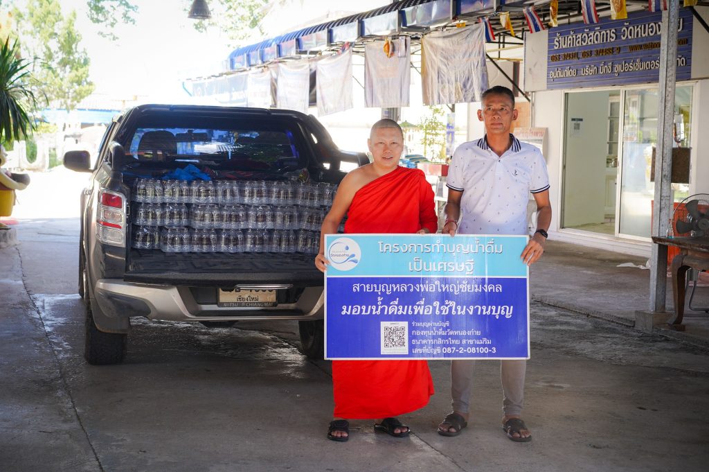 น้ำดื่มส่วนนึ่งมอบแด่พระภิกษุสงฆ์ผู้ปฏิบัติธรรม ตามศูนย์ปฏิบัติธรรมต่างๆ รวมถึงงานวัดงานบุญที่จัดขึ้น