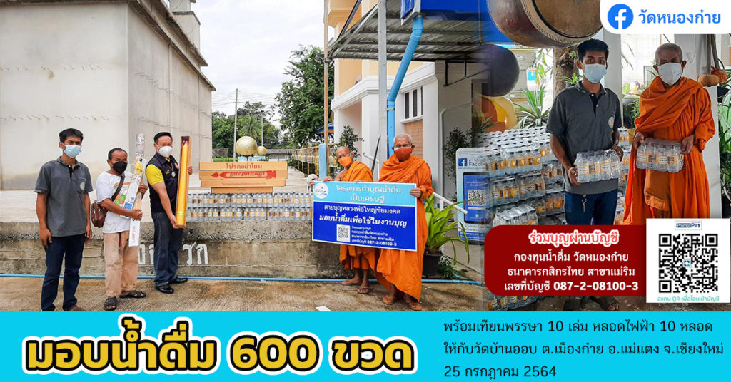อนุโมทนาบุญกับเจ้าภาพที่ร่วมบริจาคน้ำดื่ม 600 ขวด เทียน […]