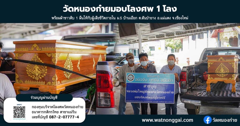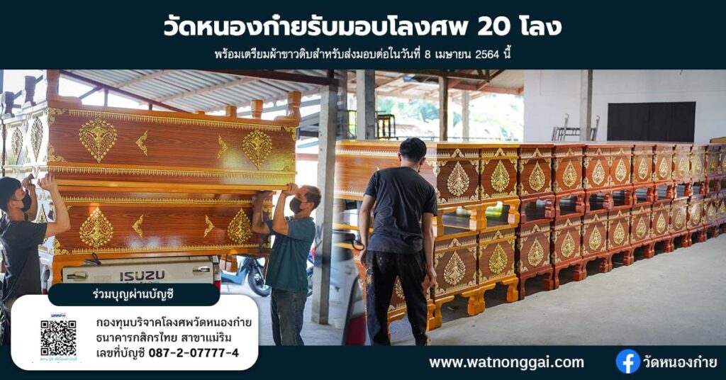 6 เม.ย. 2565 วัดหนองก๋ายได้รับมอบโลงศพจำนวน 20 โลงที่ได […]