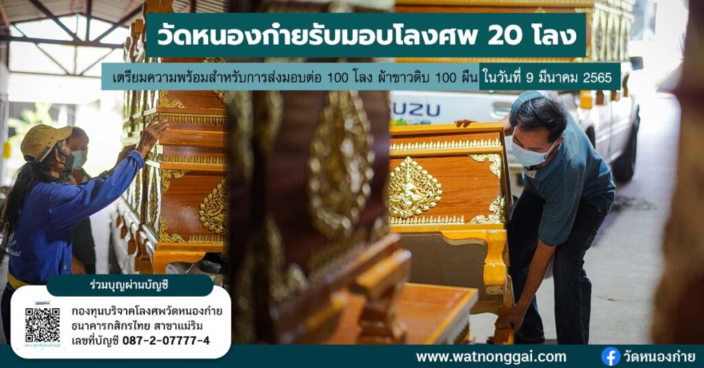 3 มี.ค. 2565 วัดหนองก๋ายได้รับมอบโลงศพจำนวน 20 โลงที่ได […]