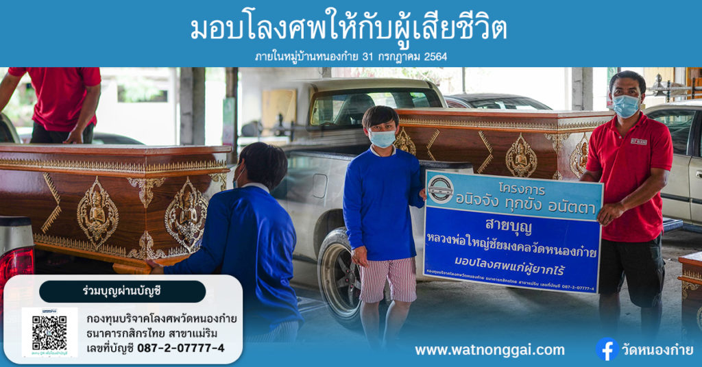 วัดหนองก๋ายมอบโลงศพให้กับผู้เสียชีวิตภายในหมู่บ้านหนองก๋าย 31 ก.ค. 2564