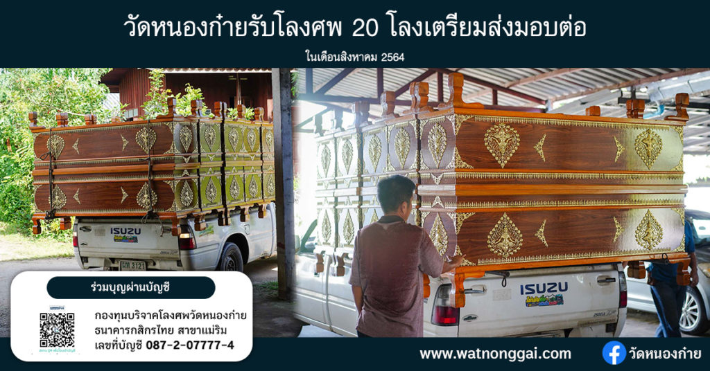 วัดหนองก๋ายรับมอบโลงศพจำนวน 20 โลงเตรียมความพร้อมสำหรับส่งมอบต่อ 23 ส.ค. 2564