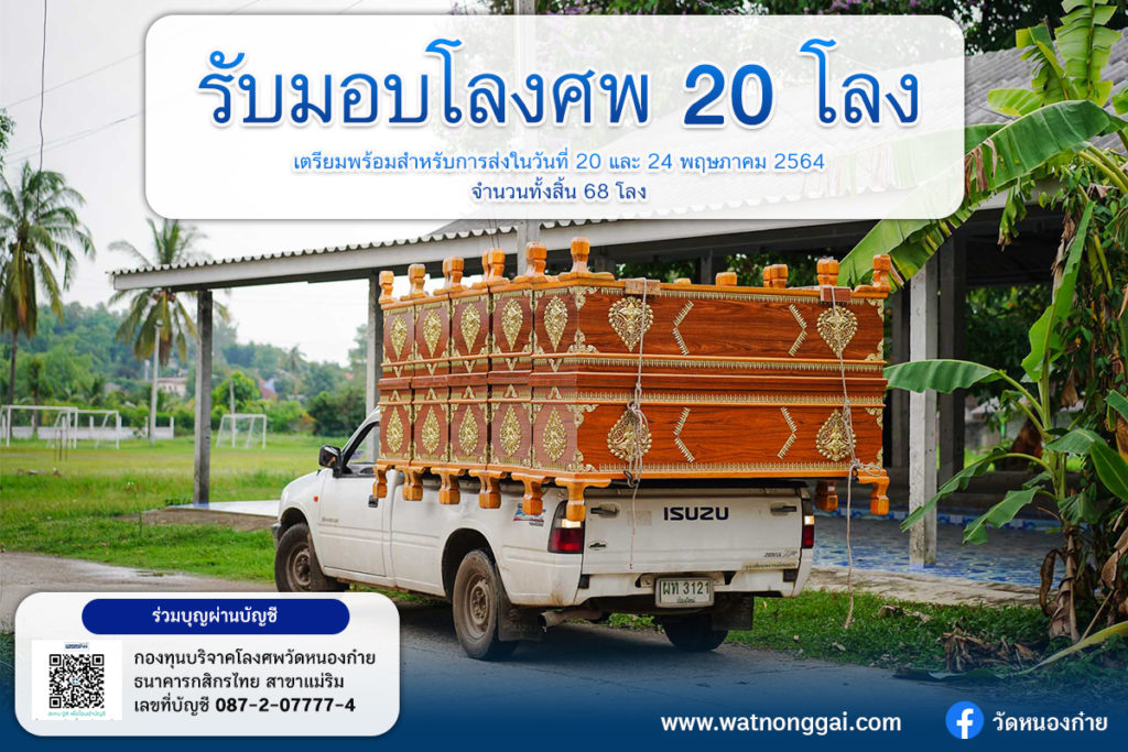 วัดหนองก๋ายรับมอบโลงศพจำนวน 20 โลงที่ได้รับการบริจาคจาก […]