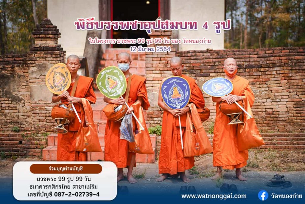 พิธีบรรพชาอุปสมบทพระภิกษุสงฆ์ 4 รูป ของวัดหนองก๋าย 12 มี.ค. 2564