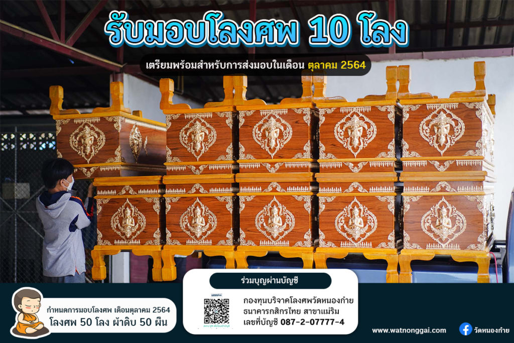 13 ตุลาคม 2564 วัดหนองก๋ายได้รับมอบโลงศพจำนวน 10 โลงที่ […]