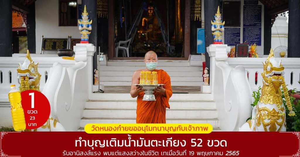 อนุโมทนาบุญกับเจ้าภาพเติมน้ำมันตะเกียง 52 ขวด เสริมดวงอานิสงส์แรง 19 พ.ค. 2565