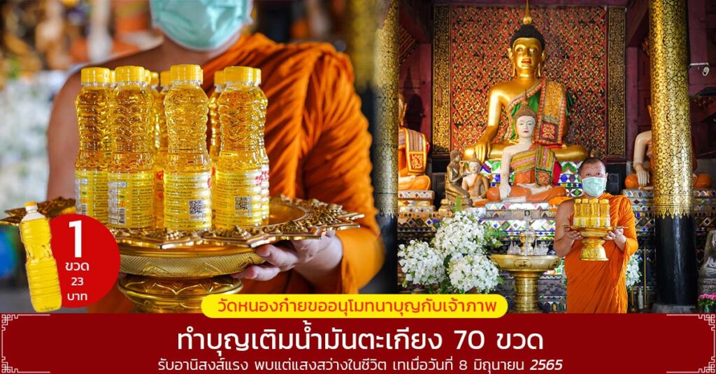 อนุโมทนาบุญกับเจ้าภาพเติมน้ำมันตะเกียง 70 ขวด เสริมดวงอานิสงส์แรง 8 มิ.ย. 2565